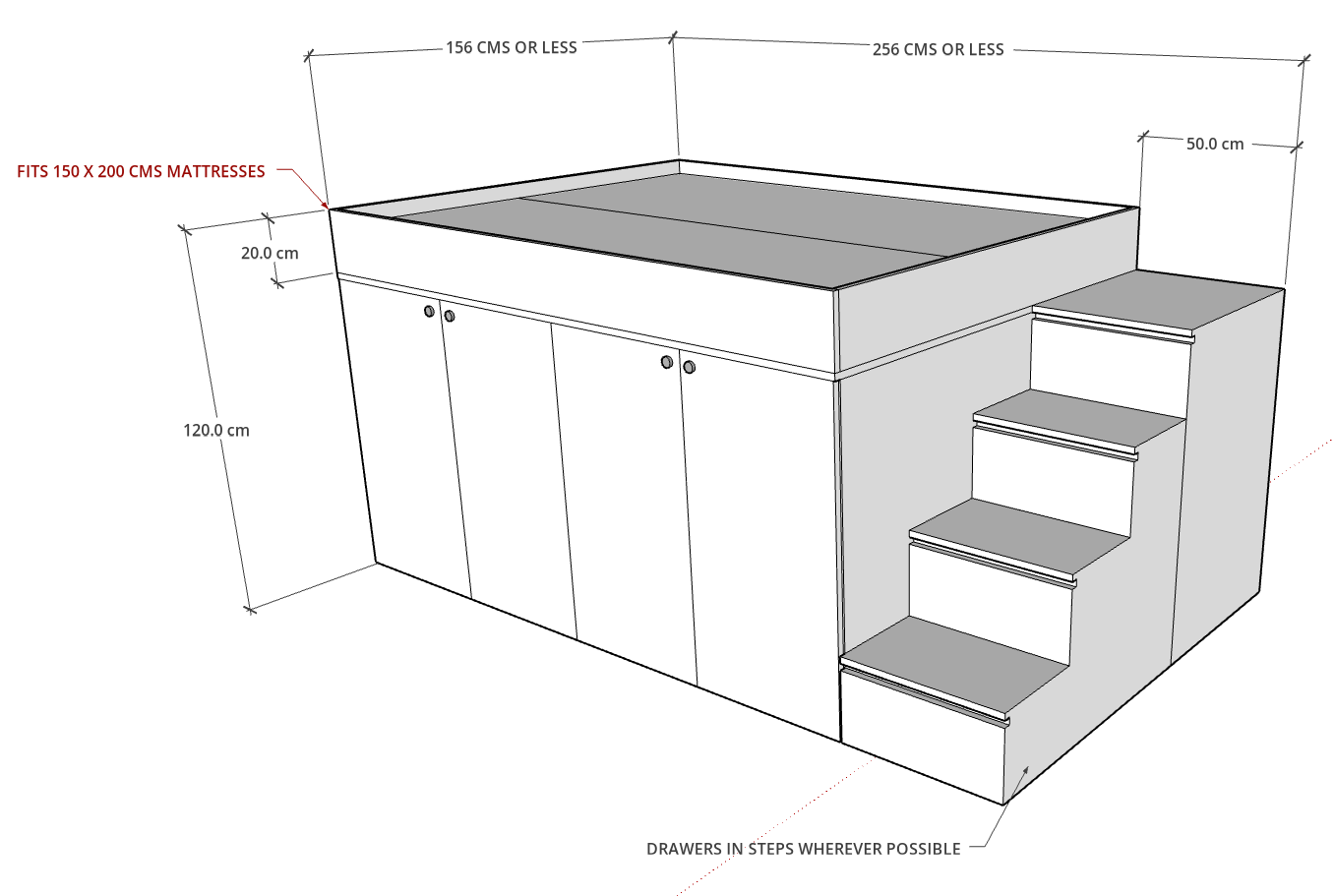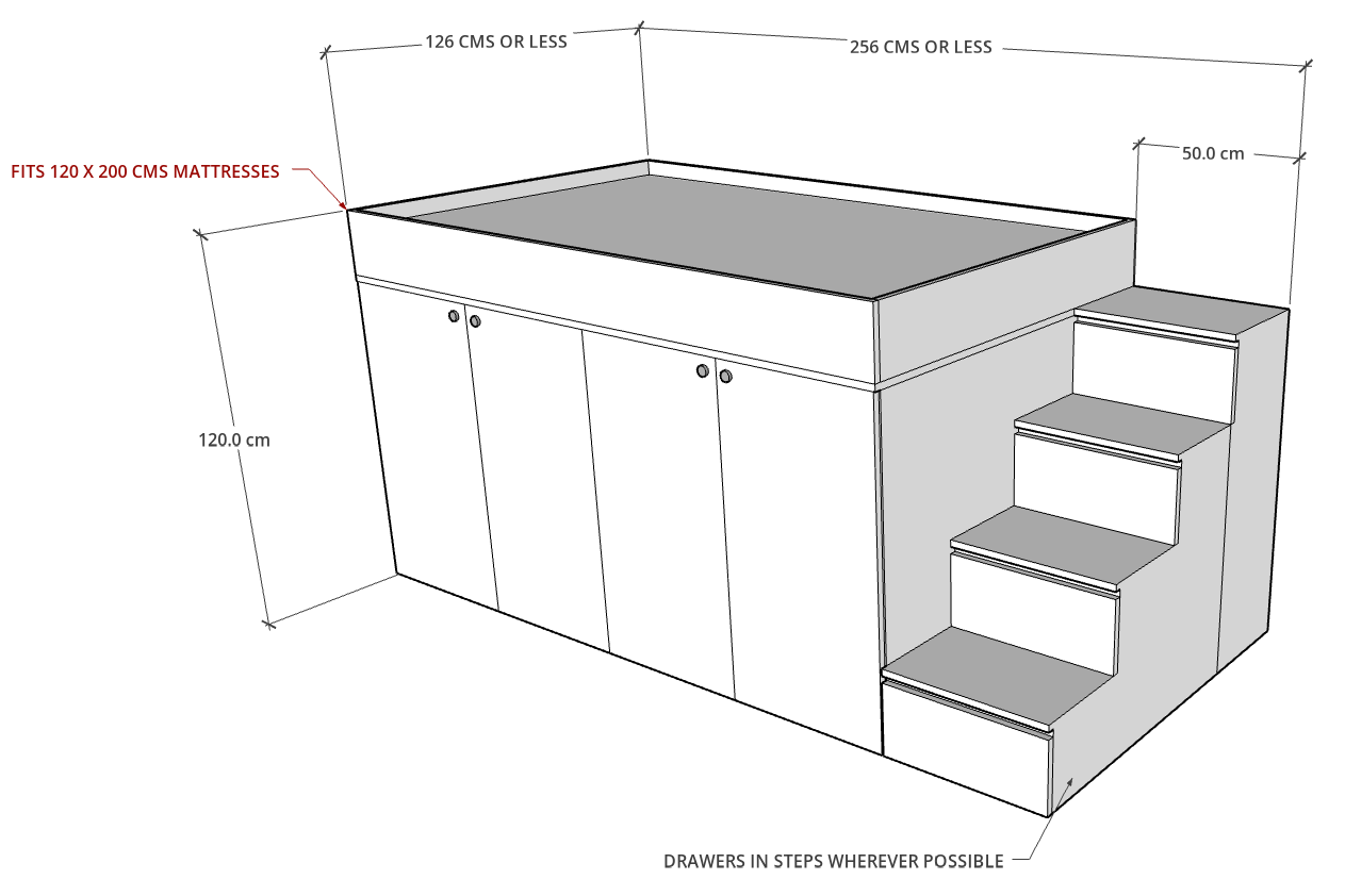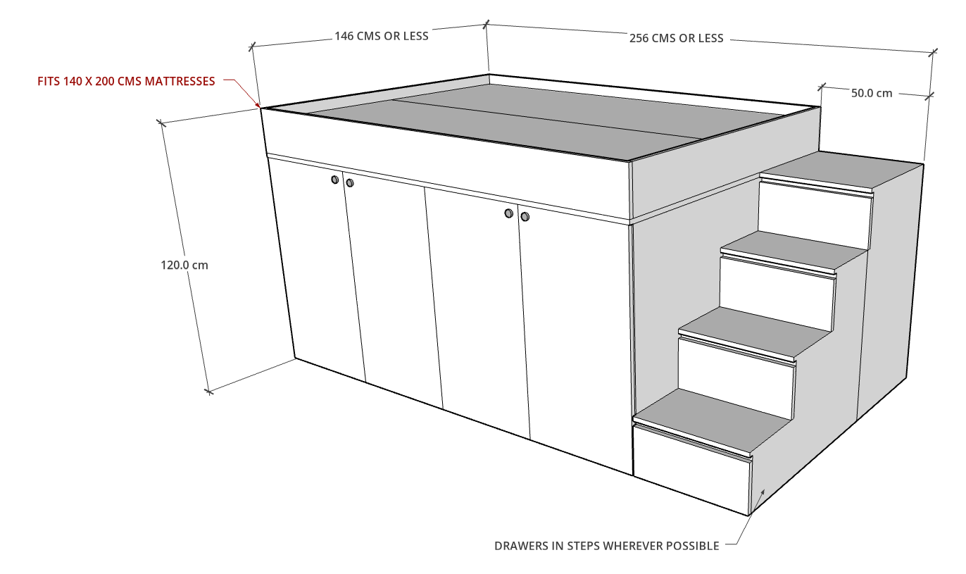 Contact us: If any customization on MAGA Loft Bed need to be made, in terms of size, storage or colors of fabric & wood, please inform our team via WhatsApp on 04 3353291 upon order.