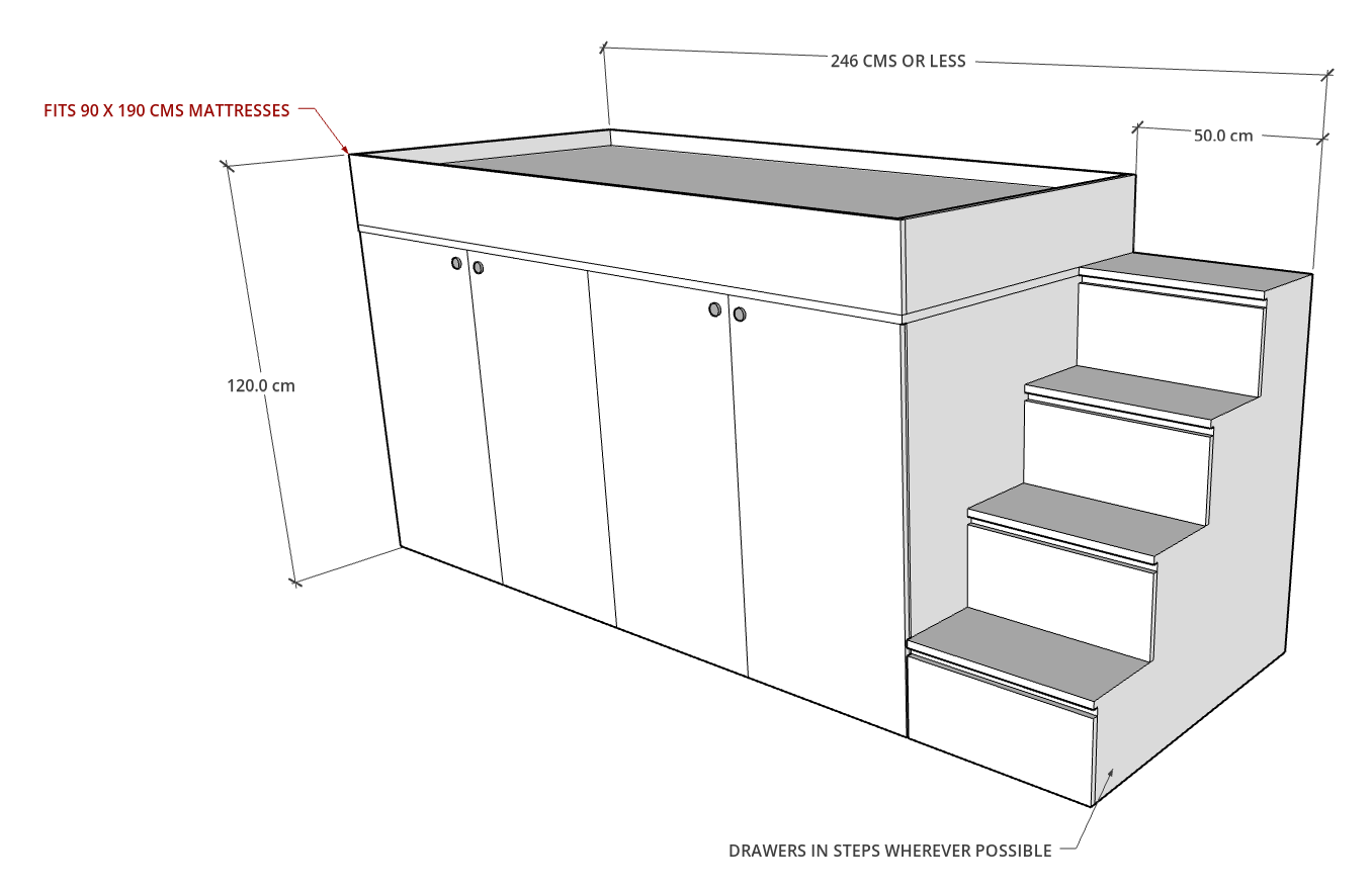 - Loft beds or bunk beds need to be mounted to the wall for extra strength and stability. Customers are requested to allow our team to mount these on wall if required.