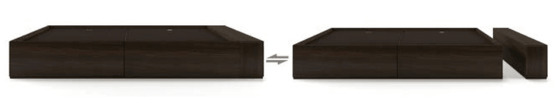 - Hide and sleep. The minimalist Toshi bed has storage that belies its frame. With a mix of box storage, pull out drawers, and open shelves, this ingenious design has room for extra blankets, pillows, winter wear, books, shoes, and more, all within easy reach. Supported by metal stoppers, the bed is ideal for modern apartments.