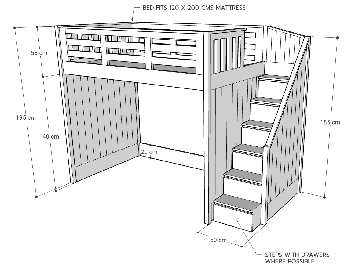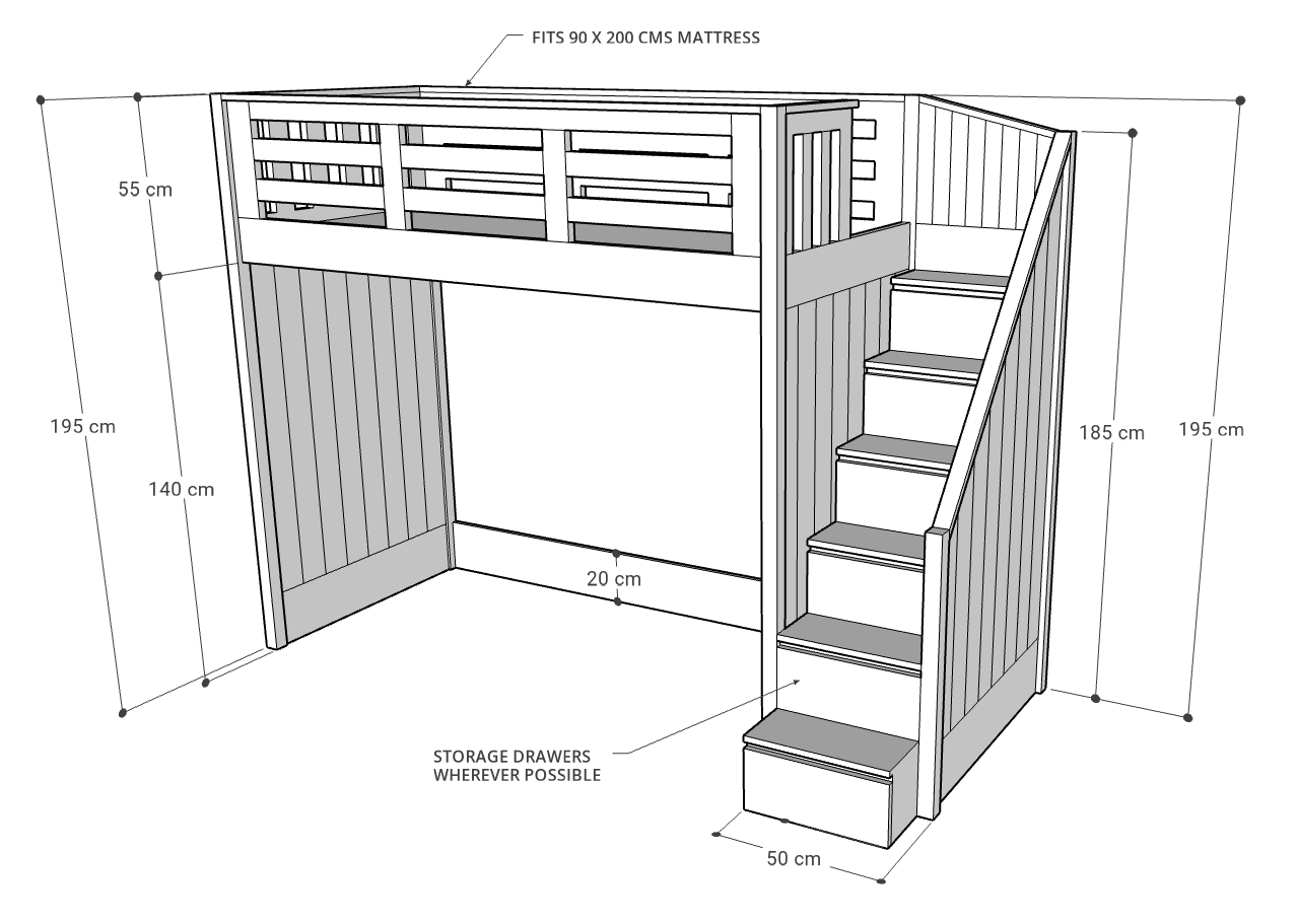 - Loft beds or bunk beds need to be mounted to the wall for extra strength and stability. Customers are requested to allow our team to mount these on wall if required.
