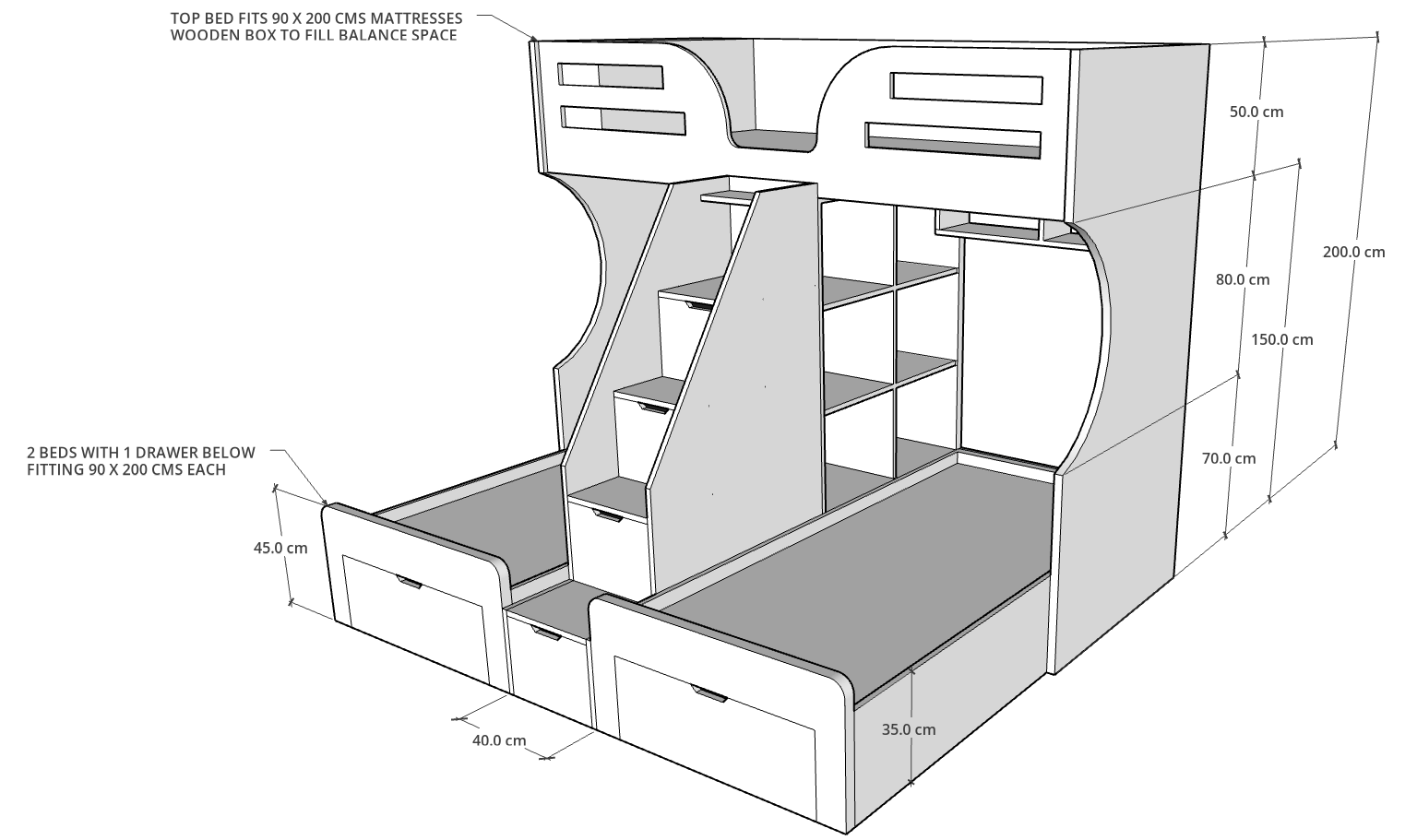 Contact us: If any customization on Ultra Bunk Bed need to be made, in terms of size, storage or colors of fabric & wood, please inform our team via WhatsApp on 04 3353291 upon order.